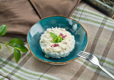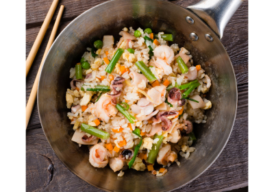 Морепродукты на подушке из риса