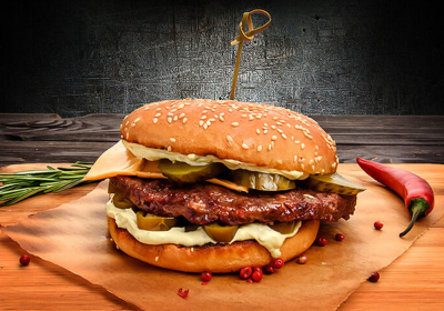 Бургер с говяжьей котлетой и сыром чеддер