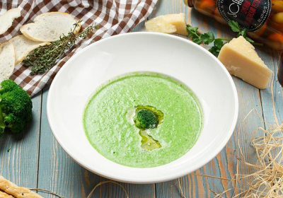 Крем-суп из брокколи, куриного филе и бекона